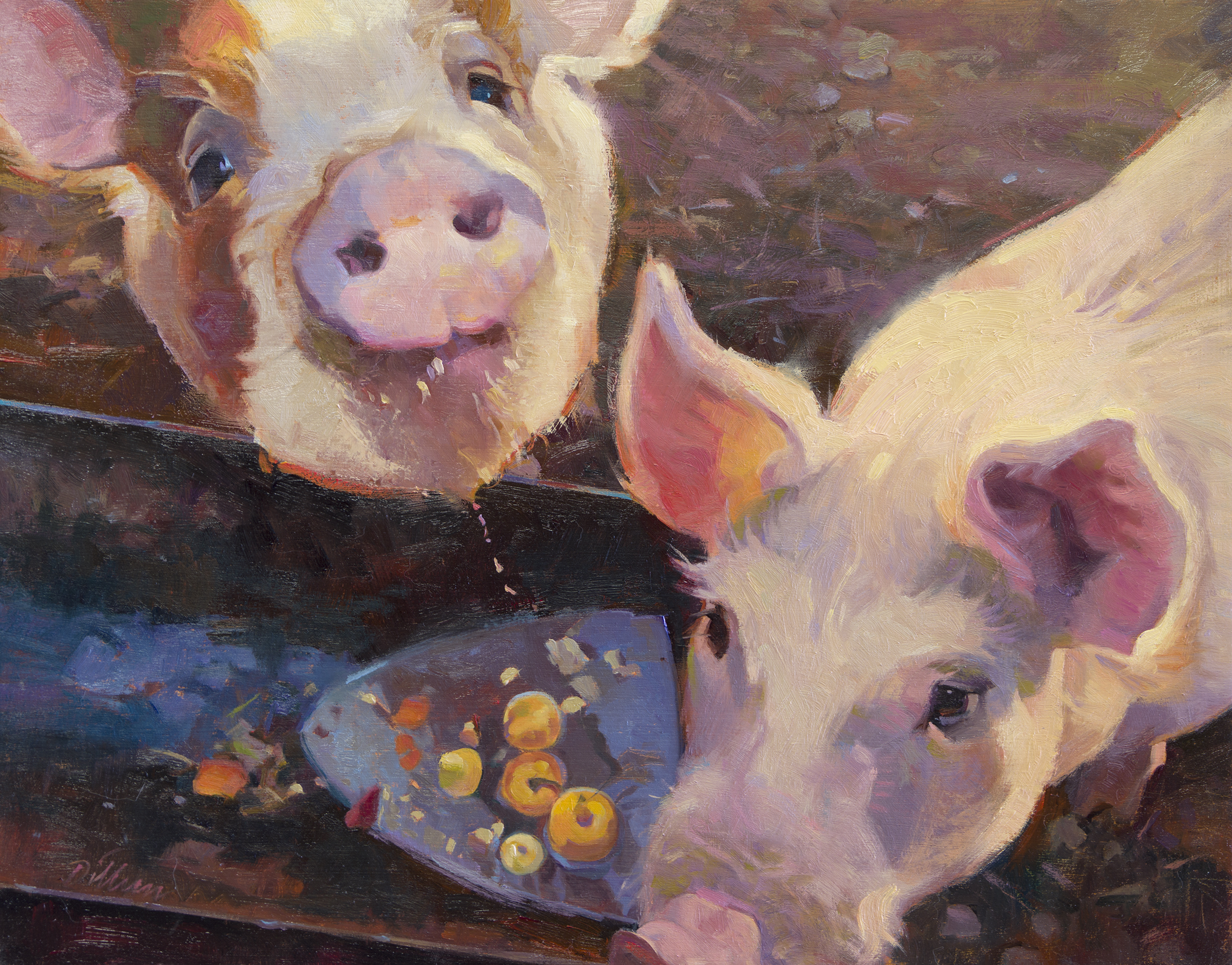 “More?!” Hey, all show paintings don’t have to be beautiful or thought provoking. Some can be just fun. These pigs posed for me at a backyard farm in Rockville, Utah. Just like us humans, always looking for something more!